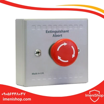 - شستی توقف اطفا حریق (معمولا به رنگ آبی): این نوع شستی برای جلوگیری از تخلیه برخی از انواع سیستم اطفا حریق (مانند سیستم اطفا گازی) مورد استفاده قرار میگیرد. فرض کنید به دلیل وجود گرد و غبار در اتاق باتری، سیستم اعلام حریق فعال شده و هشدار تخلیه گاز به صدا درآمده است. در این زمان شمارشگر معکوس برای تخلیه گاز فعال شده ولی قصد داریم جلوی این عملیات را به صورت دستی بگیریم بنابراین کافیست شستی توقف اطفا حریق را فشار داده و آنرا فعال نماییم.